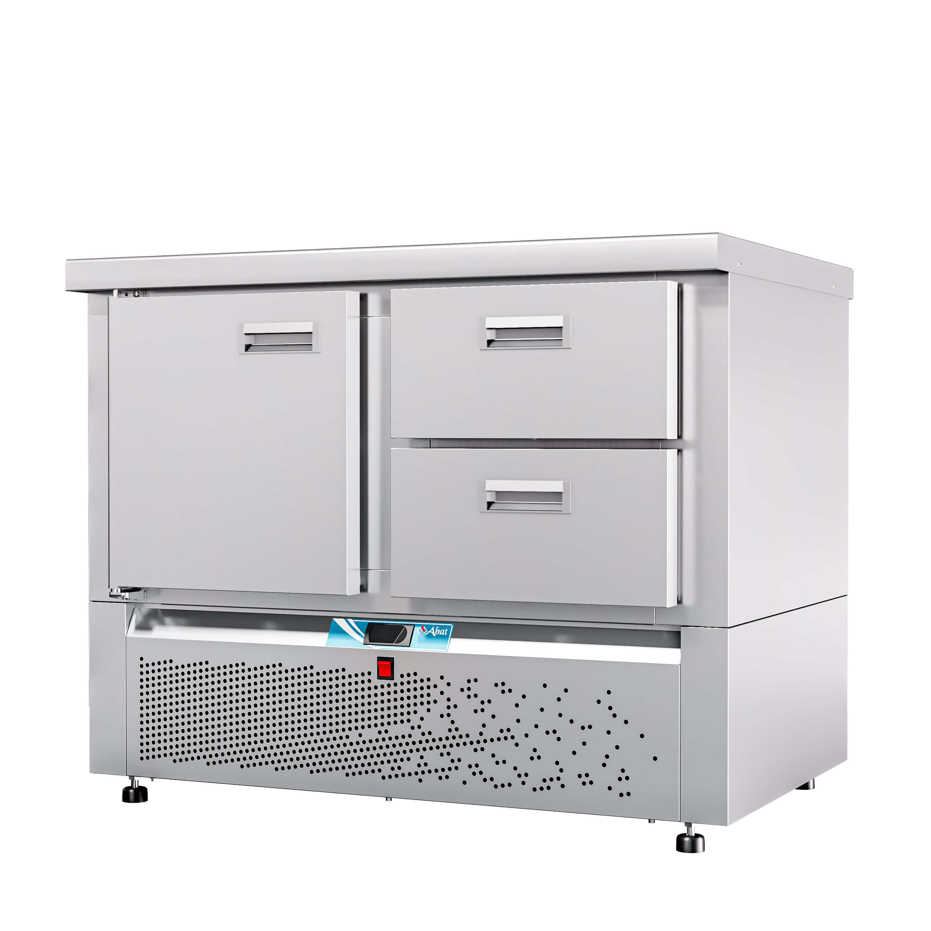 Секции холодильных столов взаимозаменяемые. Предусмотрена возможность замены двери на секцию из одного или двух ящиков, и наоборот.