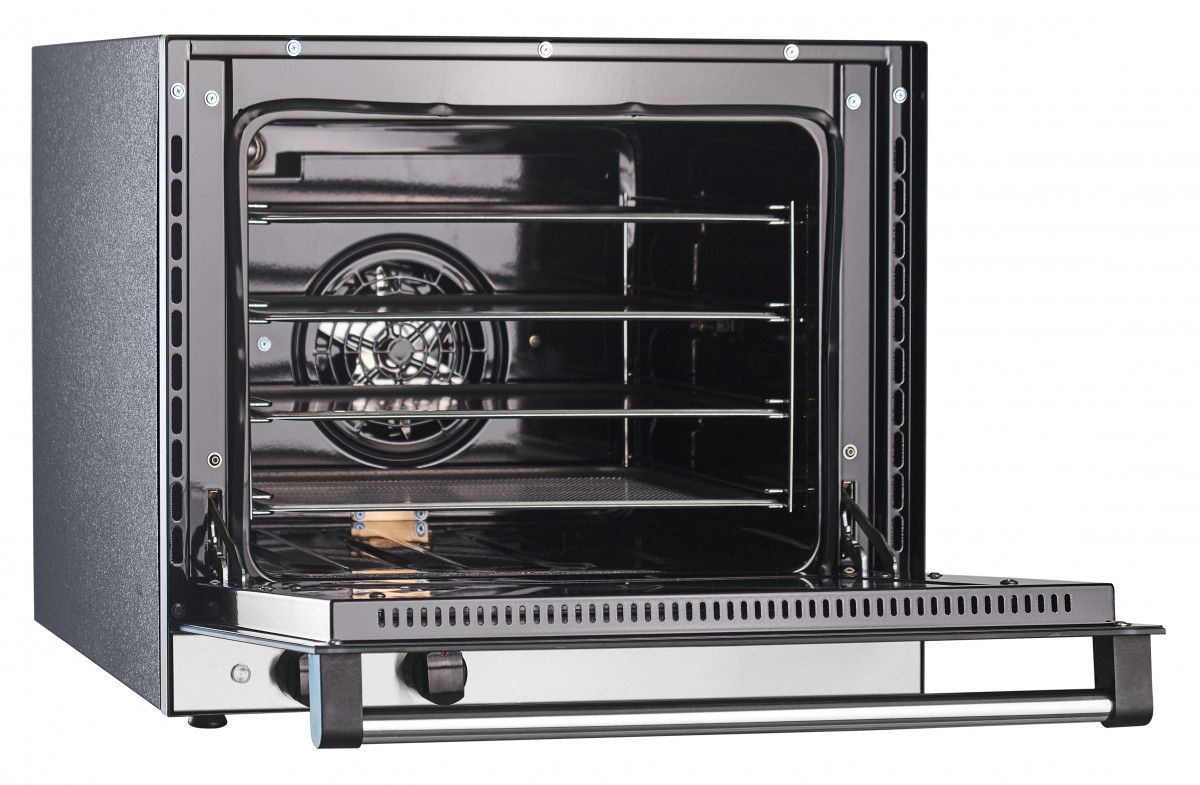 Конвекционная печь ПКЭ-4Э предназначена для выпечки кондитерских изделий на предприятиях общественного питания. Термообработка продуктов осуществляется за счет равномерной циркуляции горячего воздуха внутри рабочей камеры.