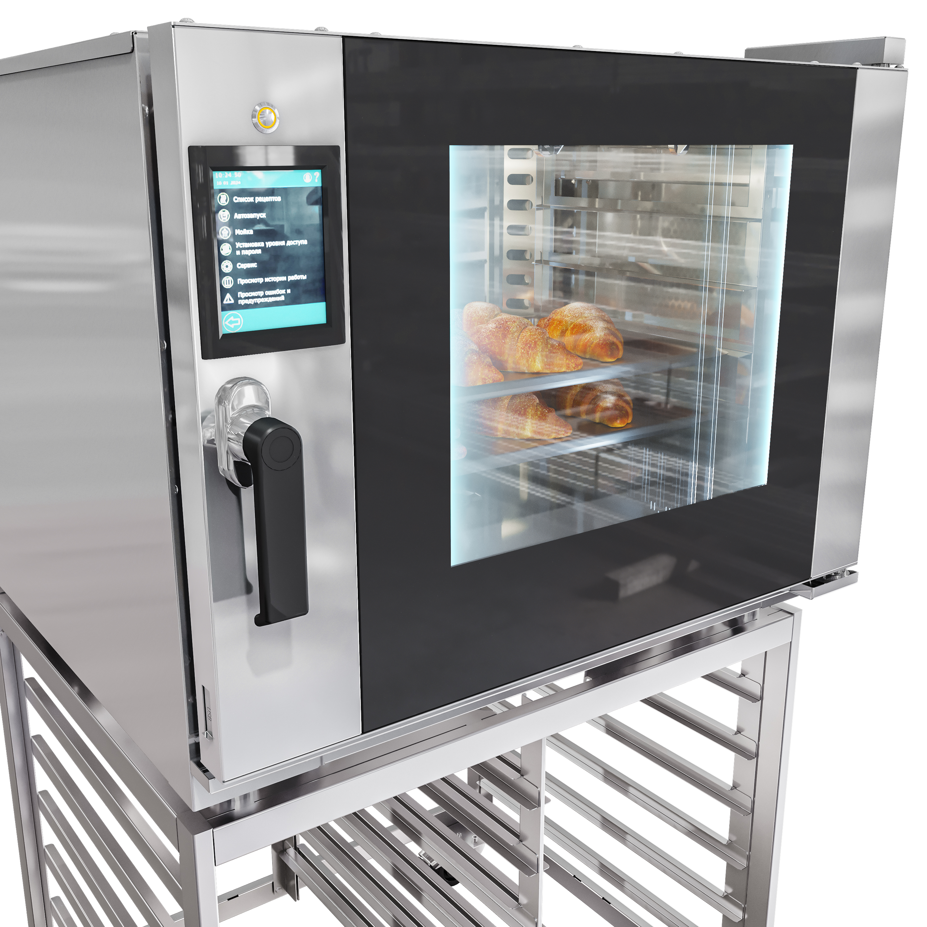 Конвекционная печь КЭП-5ПП предназначена для приготовления и разогрева блюд, а также выпечки хлебобулочных и кондитерских изделий на предприятиях общественного питания. Управление осуществляется через электронную панель управления (Touch панель), расположенную на двери печи.
