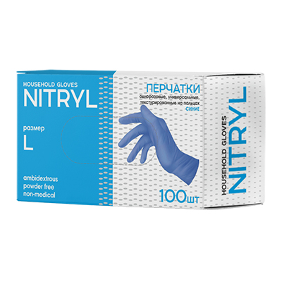 Одноразовые нитриловые перчатки синего цвета — надежная защита рук при работе в общепите, пищевой промышленности, клининге и быту. Изготовлены из прочного нитрил-бутадиенового каучука, не содержат латекса и пудры, поэтому абсолютно гипоаллергенны и безопасны для кожи.