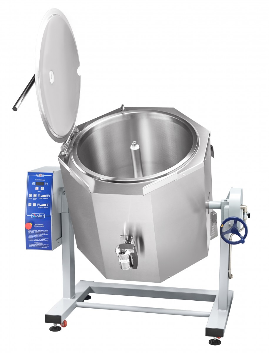 Котел пищеварочный электрический с функциями перемешивания и ручного опрокидывания КПЭМ-100-ОМР-ВК предназначен для приготовления бульонов, первых, вторых и третьих блюд. Используется на предприятиях общественного питания самостоятельно или в составе технологических линий.