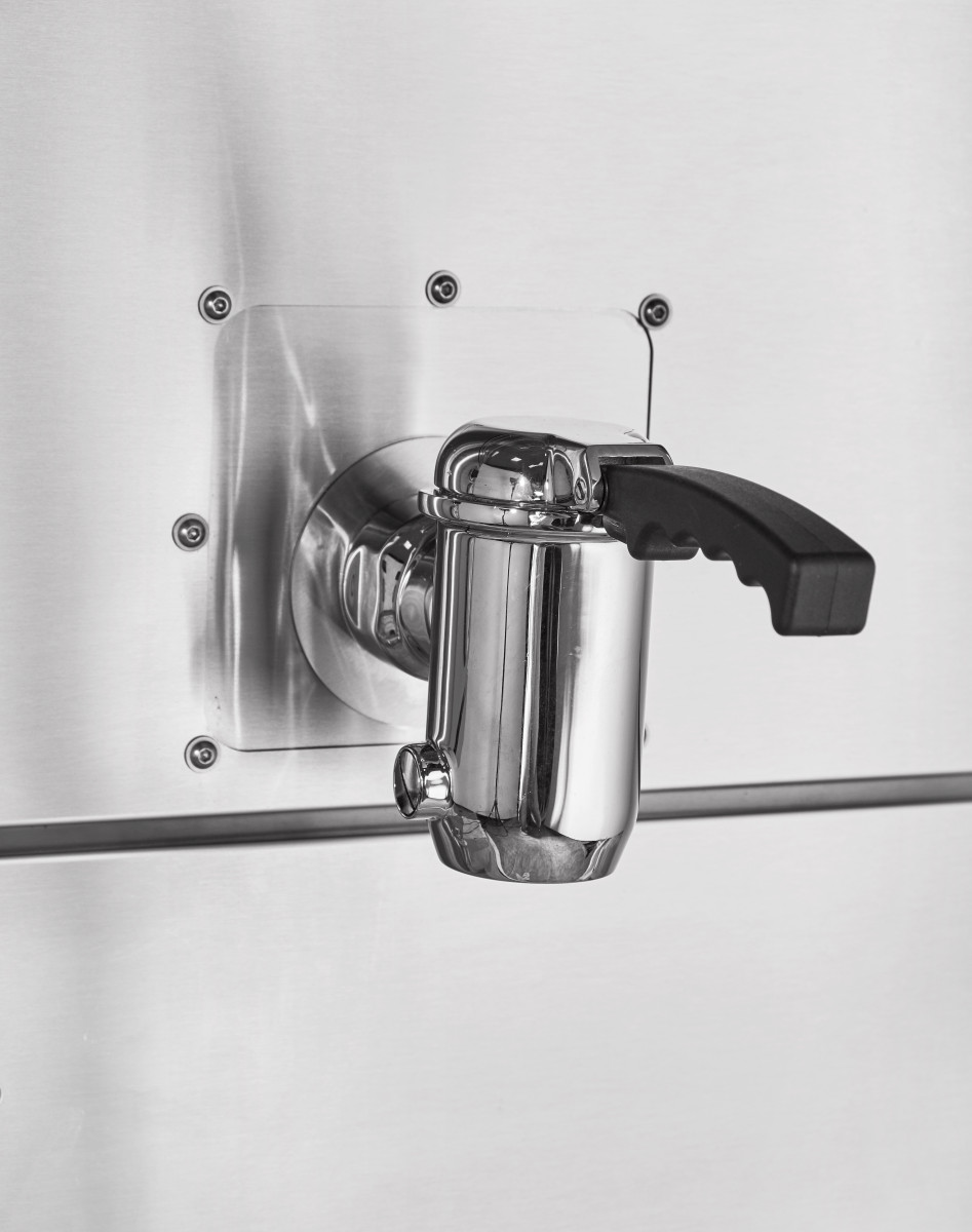 - сливной кран диаметром 40 мм на лицевой панели