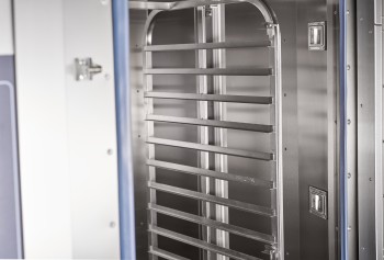 - совершенная аэродинамика обеспечивает равномерную температуру по всей рабочей камере и совместно с вращением тележки позволяет достичь равномерной окраски выпечки на всех уровнях тележки-шпильки;